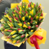 Букет из 101 красного и желтого тюльпана с упаквокой.