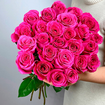 Букет из Эквадорских роз сорта Pink Floyd ярко-розового цвета. Очень ароматные и красивые розы.