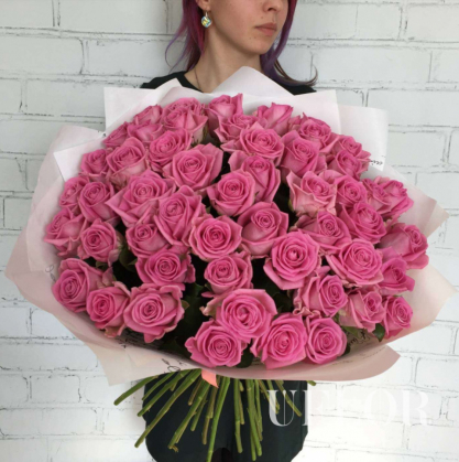 51 розовая роза в упаковке | Купить в Ногинске