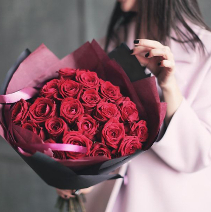 Букет из красных роз в стильном оформлении