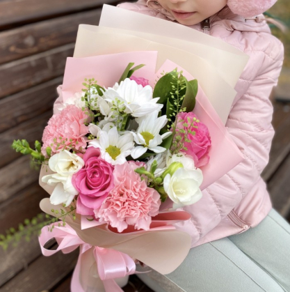 Небольшой букетик из свежих цветов для маленькой принцессы.