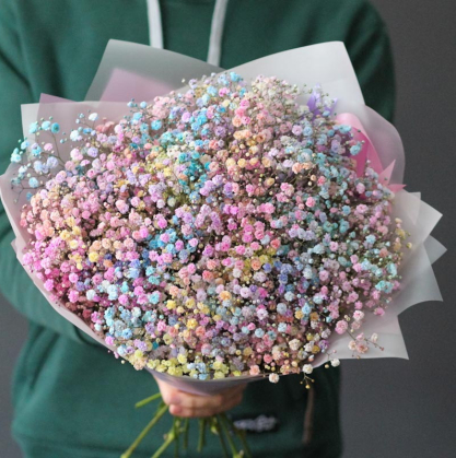 Радужная гипсофила в стильной упаковке.