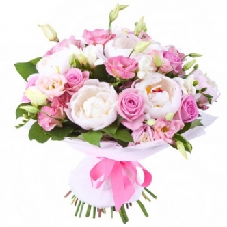 Удивительный букет из нежных альстромерий и роз в стильной упаковке.