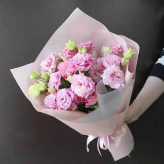 - Универсальность: На одной ветке эустомы может быть несколько бутонов разной степени раскрытия, что придает букету объем и динамику. Она прекрасно сочетается с розами, пионами и гортензиями.