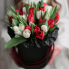 Коробка красных и белых тюльпанов | Купить в Ногинске