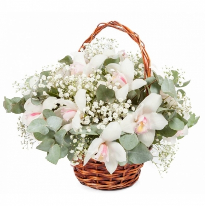 Корзина белых орхидей "Воздушный поцелуй" | Купить в Ногинске
